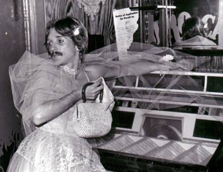 This is Wayne, a friend of mine who moved to San Francisco from Macon Georgia. The locale is the Castro Cafe next to Toad Hall. The time, Halloween in the 1970's.